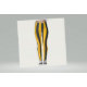 Patrón geométrico abstracto con rayas verticales en tonos amarillos y grises, creando un diseño rítmico y llamativo.