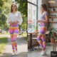 Leggings Banded Rainbow Gradient Neon Plaid