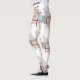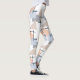 Estas leggings tienen un diseño Bauhaus de rectángulos repetitivos, cuadrados, diamantes y triángulos en colores de playa de bronceado, gris, azul y naranja.