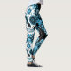 El cráneo de azúcar del Día de los Muertos en coloridos tonos azules rodeados de flores.