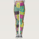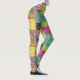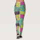 Es como un colcha de patchwork para tus piernas. Estas leyendas estampadas tienen un ilustracion de colcha con patchwork floral de colores llamativos en un estilo boho maximalista en tonos amarillos, naranjas, magenta, azul turquesa, verde azulado, verde limón y violeta.