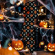 Leggings Calaveras de Halloween, calabazas y flores negro
