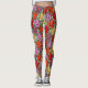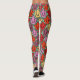 Estas leggings tienen un diseño art deco de tulipanes de pentagones y trapezoides en naranja, rojo, púrpura, dorado y verde.