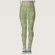 Estas leggings tienen un diseño art deco de tres ovales rotos en dos rectángulos muy delgados en verde camo sobre un campo de verde claro. ¿Quieres el mismo diseño con colores diferentes? Mándame un mensaje.