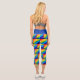 Estas leggings vibrantes están decoradas con un patrón a rayas acuáticas en colores arcoiris. Acuarela original © Michele Davies.