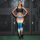 Un hermoso y moderno par de leggings de capri para las mujeres que están rayadas en un patrón geométrico y diseñadas en un estilo de vida moderno.