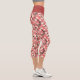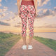 Leggings Capri Asian Floral Print Pink Peach White Chinoiserie