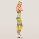 Leggings Capri Asymmetric Stripes Lines Brown Yellow Green