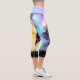 Leggings Capri Atardecer cósmico y colorido con siluetas negras