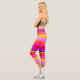 Diseño de rayas vibrantes de color amarillo morado magenta. Magenta amarillo brillante colorido creativo rayado leggings de capri. Diseño de rayas únicas en colores vibrantes. El estilo del conjunto es luminoso y vibrante.