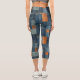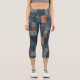 Leggings Capri Blue & Tan Denim Patchwork Personalizado de texto