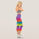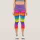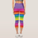 Vibrantes rayados Capri Leggings en un caleidoscopio de colores que captan la esencia del arcoiris con tonos morados, rosas, verdes, naranjas y amarillos,