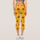 Flores con pétalos amarillos y centros de rojo y verde. Las flores grandes se superponen en las piernas. Pequeñas flores en fila alrededor de la cintura.