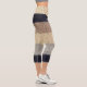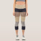 These high-waisted capri leggings showcase a Christmas deer embroidery graphic over a navy, gray, beige, and brown striped simulated knitted wool texture on a rich multicolor background. This is a premium print simulation, giving the cozy winter knit look without bulk. Buttery soft, stretchy, and breathable for yoga, workouts, lounging, and streetwear. Sporty-chic comfort meets festive style in one standout piece—perfect for gifting. Step into seasonal style today.