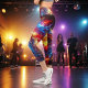 Los destellos de relámpagos eléctricos en ramas brillantes de tonos multicolores son brillantemente vivos en estas leggings de Capri.