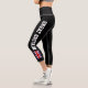 Leggings Capri de la bandera británica Jack de cintura alta. pantalones de personalizado para deportes, yoga, entrenamiento de fitness, ejercicio y más. Color de fondo negro con texto en negrita y bandera británica del Reino Unido, Gran Bretaña. Diseño del orgullo inglés.