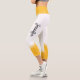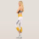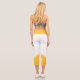 Estas leggings modernas, blancas y amarillas, presentan un elegante diseño floral blanco en la cintura y en las piernas con rayas blancas. Personalizable fácil agregando tu nombre en ambos lados en una fuente caligráfica negra.