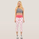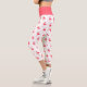 Un par de leggings de capri con estampado flamingo rosado. El patrón muestra flamencos ilustrados en un fondo blanco. Las leggings tienen una cintura rosa que combina con el color de los flamencos.