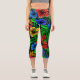 Leggings Capri Flor de Hibiscus azul amarillo rojo tropical