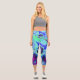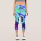 Leggings Capri Flor de hibiscus verde y azul psicodélico retro