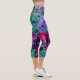 Leggings Capri Flor de jardín rosada, púrpura y rosada