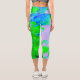Leggings Capri Flor retro abstracta en lavanda y verde limón