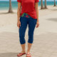 Leggings Capri Flores rojas amarillas azules sobre azul marino