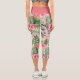 Flores tropicales rosas y verdes Capri Leggings para el yoga.
