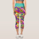 Las leggings de capri de ejercicios divertidos para las mujeres. Con un bonito diseño contemporáneo violeta, azul verde azulado, rosa caliente, naranja vibrante y colores vivos color turquesa acuático de los cuadros. Diseño hipster, original, de moda para la diva de moda artística o de moda artística, trendsetter de cadera, nouveau vintage art deco o moderno abstracto de motivos geométricos gráficos digitales abstractos. Muestra tu estilo único y personal cuando haces ejercicio en el gimnasio, relajarte y hacer ejercicio en clases de yoga, o correr o trotar. ¡Miren lindos y de moda mientras están activos y se mantienen en forma mientras usan estos fríos y coloridos pantalones de yoga!