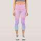 Las leggings de Capri presentan un diseño de galaxia holográfica iridiscente en tonos pastel salpicado de estrellas y puntos purpurinas. El ilustracion brillante de alta resolución en colores mezclados de rosa, azul y violeta le da un toque de brillo a las leggings. Este fondo mágico y feliz se verá genial en todas las temporadas. Es un lugar de moda, moda y deporte elegante para tu clase de yoga o cualquier deporte. Personalice con sus iniciales o nombre en la banda de espera si es necesario.