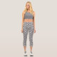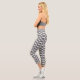 Estas modernas y modernas leggings de diseño se caracterizan por un entramado geométrico negro con fondo blanco.