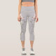 Leggings Capri de cintura alta grises con ramas florales elegantes.