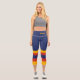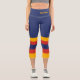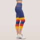 Three-color design in half solid and then with stripes. Horizontal lines in three colors for your sporty Capri leggings. Add your name on the high waist athleisure. This variant is the retro solid blue, yellow and red version.