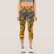 Leggings Capri Hermosas flores amarillas sobre rayas grises y neg