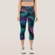 Patrón de hojas de palma coloridas sobre un fondo negro.
