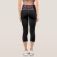Lovely Solid Black Hight Waisted Capris Leggings con un ilustracion floral rosado colocado a lo largo de cada pierna. La cintura alta también está decorada con el mismo diseño.
