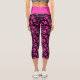 Leggings Capri Impresión de papel rosa y negro pequeño