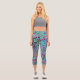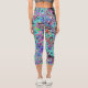Leggings Capri Jardín púrpura con flores acuamarinas psicodélicas