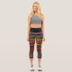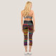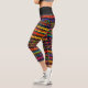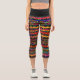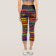 Leggings de capri/yoga con un diseño bohemio de tiras multicolores de colores vivos con cintura negra.