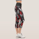 Leggings Capri Modern Black and Red Feather Design