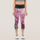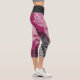 Leggings Capri Modern Black Pink Floral and Leaf