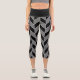 Estas leggings de capri monocromáticas presentan un patrón geométrico de arenque de moda en blanco, gris y negro.