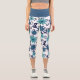 Leggings Capri Patrón de flor azul turquesa