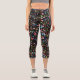 Leggings Capri Patrón de flores botánicas sobre negro