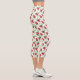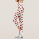 Estas leggings presentan un patrón de bonito de fresas rojas brillantes de verano con hojas verdes. Las imágenes de la fruta se colocan sobre un fondo blanco nítido.