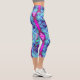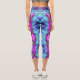 Leggings Capri Patrón de hibiscus verde y azul psicodélico