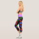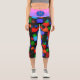 Patrón de resumen azul Naranja multicolor El diseño de las piernas capri es preppy y único con ráfagas de colores consistentes en naranja, púrpura, verde y azul en un mar de negro. Personalízalo con tu información.