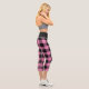 Estas rústicas leggings de capri presentan un diseño sencillo de manta de búfalo rosa y negra. Diseñado por la artista Susan Coffey.
