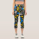 Leggings Capri Patrón floral abstracto brillante sobre fondo negr