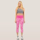 Leggings Capri Patrón Repetidor De Hoja Tropical Blanco Y Rosa